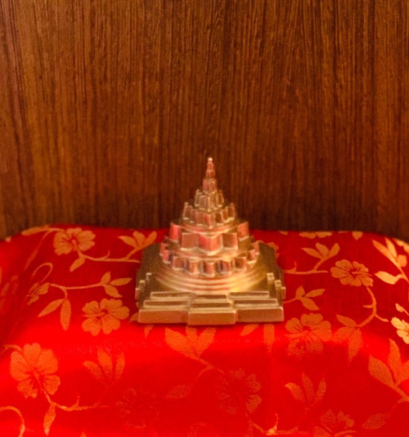 Mahameru Sri Yantra is a single solid piece of sculpted metal for upasana/ puja. The geometry is accurate, verified by distinguished Sri Vidya upasakas and made strictly as stipulated in the Agama shastra.